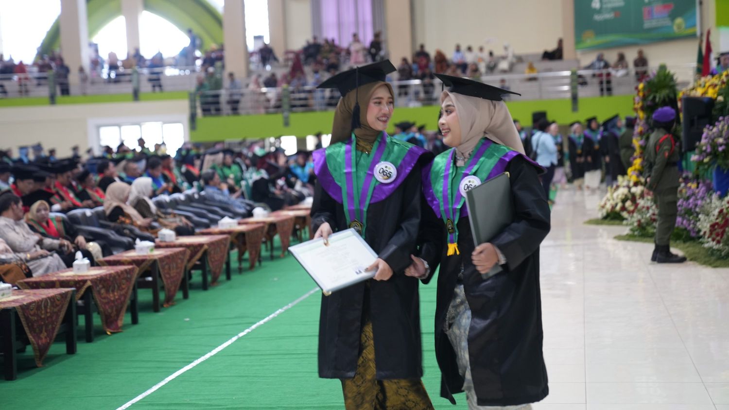 Rasa bangga dan haru tersirat dari wajah mereka saat didampingi orang tua atau wali mahasiswa membawa ijazah.